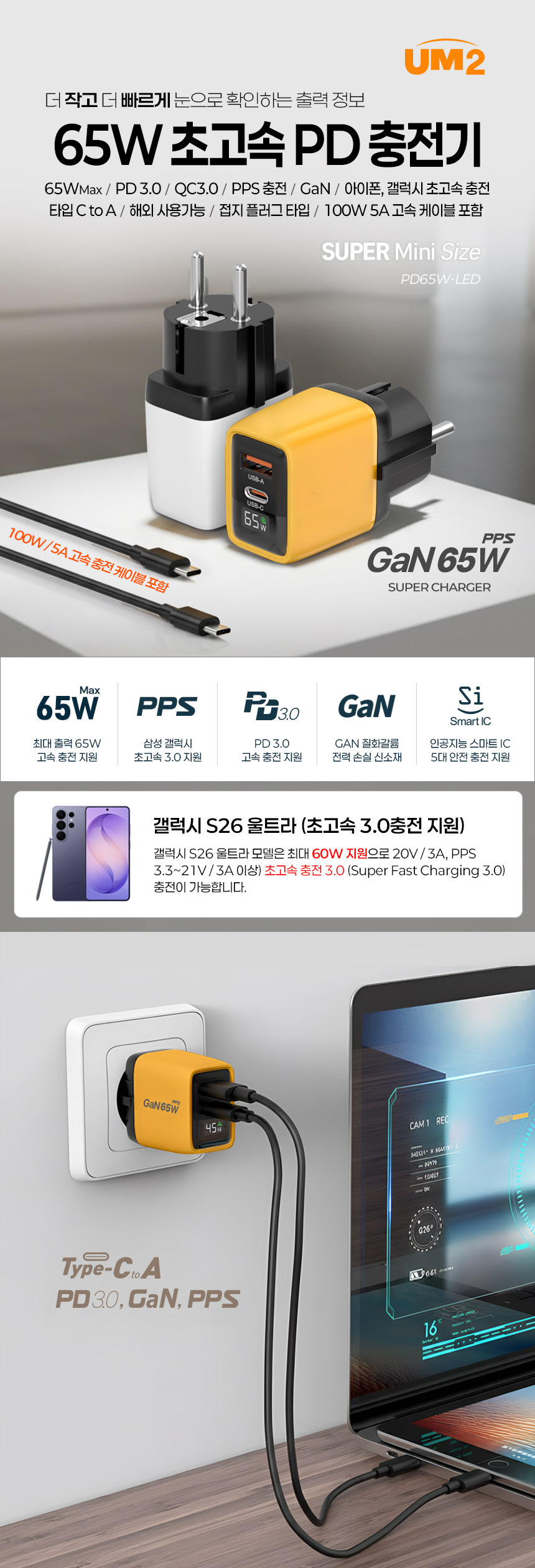 [¾Ë·Î] UC365G 3Æ÷Æ® 65W GaN ¸ÖƼ Ãʰí¼Ó ÃæÀü±â